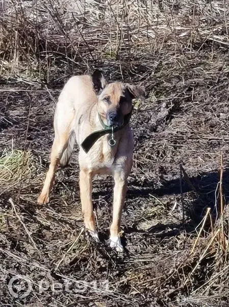 В районе деревни Еремеево найдена собака, девочка, в зеленом ошейнике.