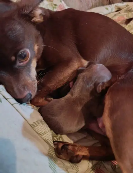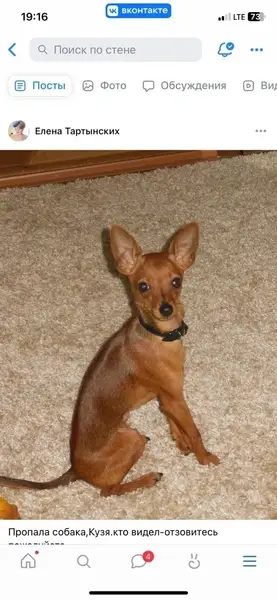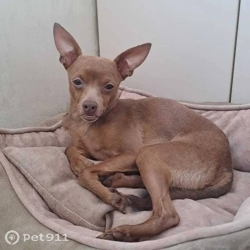 Найдена в лесу около Солманово Одинцовский район собака русский той терьер , молодой кобель. Чипа,клейма нет. Шоколадный окрас, вес 5 кг, 32 см вес холке