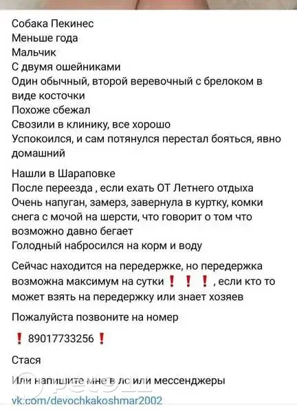 Объявление rf983806 размещено в группе ВКонтакте Москва | Pet911.ru пропала найдена собака кошка