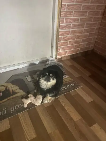 Пекинес, мальчик, предположительно меньше года, с двумя ошейниками, один обычный, второй с косточкой