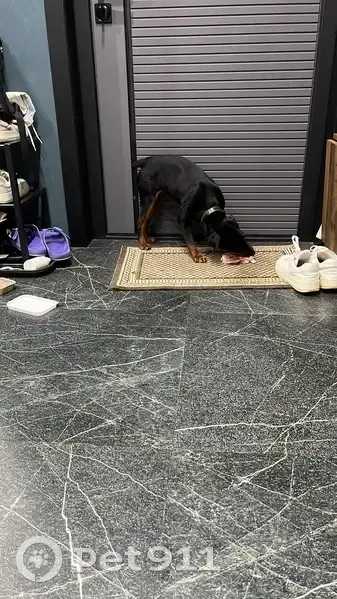 Хозяин найден!!!!! Ягдтерьер или доберман (я не понимаю в породах) молчаливый, на шее старый ошейник. Бегал в посадках