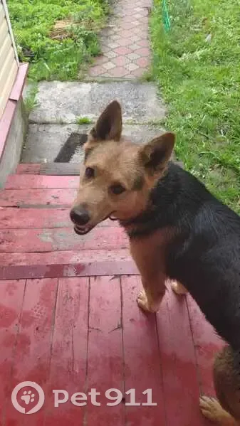 Метис овчарки, молодой, ухоженный, с двумя ошейниками.
