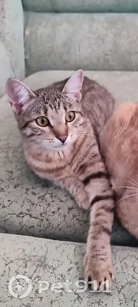 Беспородная полосатая худая, недавно стерилизованная на пузике шишечка после стерелизации, ушла с участка и наверное не смогла найти дорогу обратно так как живёт в квартире ,на даче была всего два дня