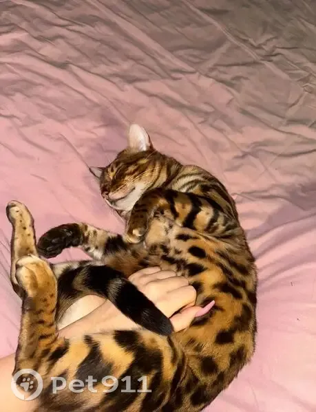 бенгальский кот, пятнистый окрас. Рыжий не отзывается на кис-кис. Зовут Деми, откликается на кличку. К чужим на руки не идет, пугается. За вознаграждение