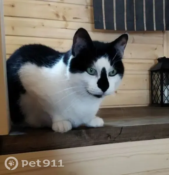 Черно-белый гладкошерстный кот. С зелеными глазами. Из особых примет - чёрный нос, похожий на клюв. Из-за этого мы его называем пингвином. Довольно крупный, но стройный. Вечером 28 мая пролез в дырку в заборе, которую мы не успели заделать.