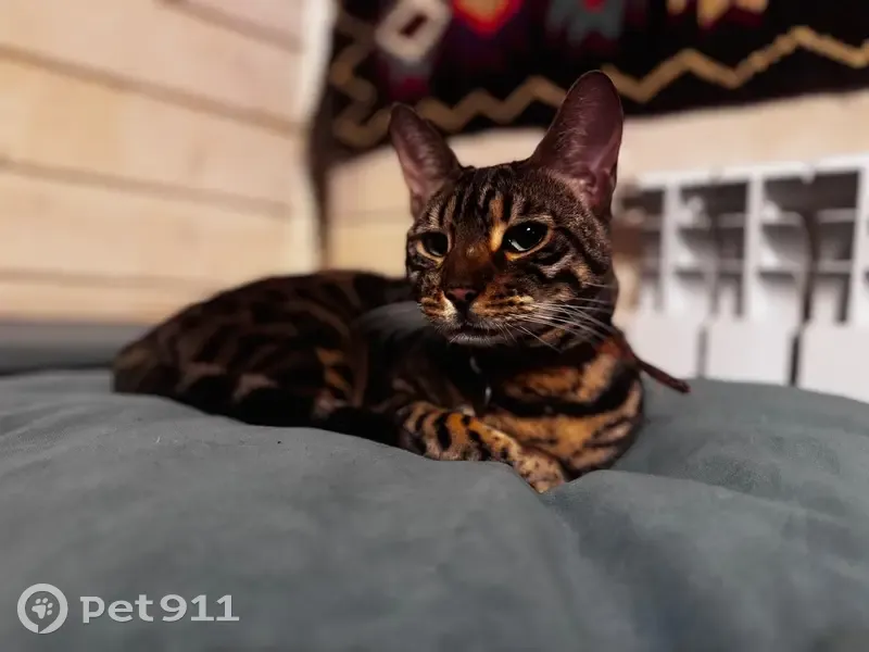 Бенгал, домосед, на улицу особо не стремился, очень осторожный, выбежал и пропрал до этого аккуратно только интересовался улицей, но попыток побега на было. Выйдет на брусчатку и сразу домой. Потерялся в районе деревни Ямищево ( Одинцово). Очень ждём домой нашего малыша. Возраст 2 года. Кот не ручной, ласкаться приходит сам по желанию.