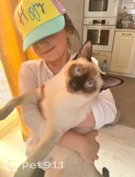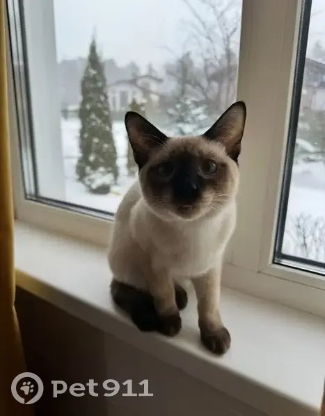 Белый котик с черными ушами, мордочкой и хвостом. Как из мультика котенок по имени Гав. Он молодой 10 месяцев, недавно кастирован, чипирован. Выскользнул когда дочь открыла дверь чтобы позвать меня во дворе, 03.08.2025 в 19.00. Поняли что убежал минут через 15, сразу стали искать, но до сих пор не можем найти. Возможно прячется где-то напуганный. Заводчица говорит, что эта порода пугливая, может забиться под чей-то дом/сарай и там напуганный сидеть.