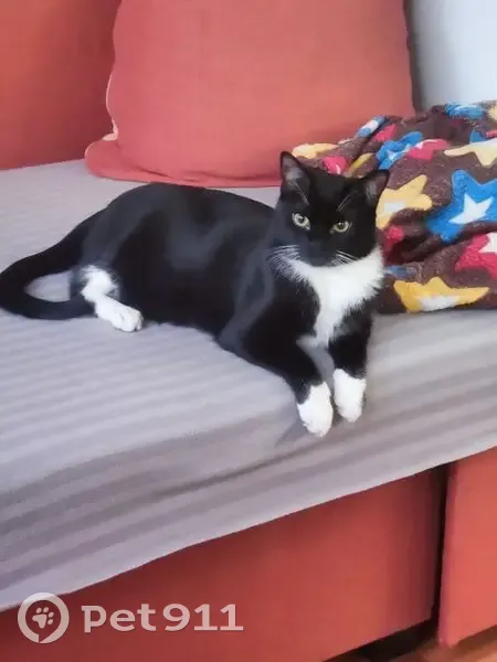Черная, гладкая, груудаа и лапки белые, никогда не была на улице.