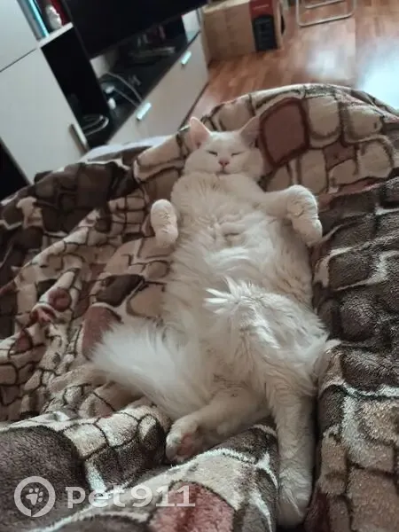 Белый, метис Мейнкуна, 1.5 года Постоянно прищуривает глаза, шерсть мягкая как у кролика, нет передних 3х передних зубов (удалили после воспаления) очень ласковый