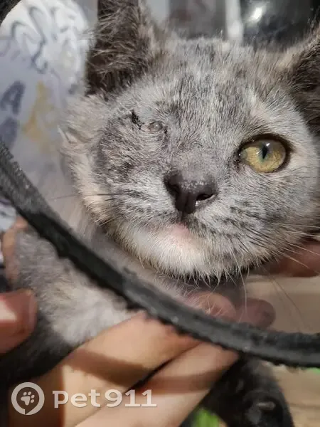 Худая,окрас серо-белый-кремовый, одноглазая(черепаховый), слева нет глаза. Пугливая. Убежала из машины на Ленинградском шоссе, округ Солчногорск, в деревне дурыкино (дом 15 примерно)рядом со ЦКАД.