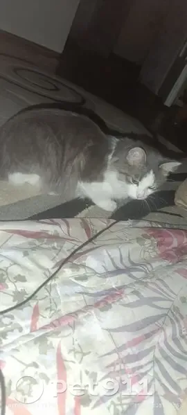 Серо белый. Ошейник черный бантиком. Красивый мальчик. Глаза зеленые. Хвост пушистый зовут сына. Номер тел +79912129819 прошу если найдется наберите член семьи безумно скучаем. Умаляю в помощи кота