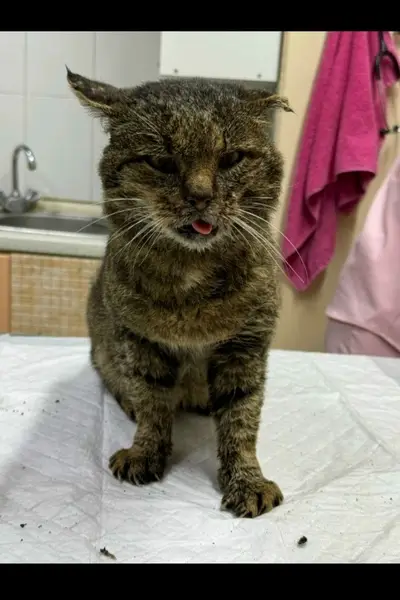 Серо-коричневый, 2года, последнее время очень похудел, добрый, ласковый котик. Кличка Семён, хорошо отзывается.