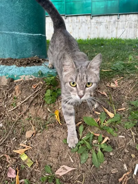 Очень худенькая пугливая кошечка с сероватая с размытыми рыжеватыми и бежевыми подпалинками. Выражение глазок как анимэ, когда печальных рисуют героев.