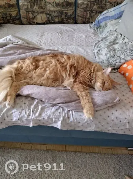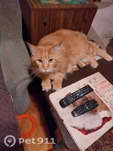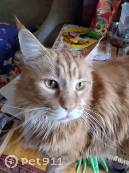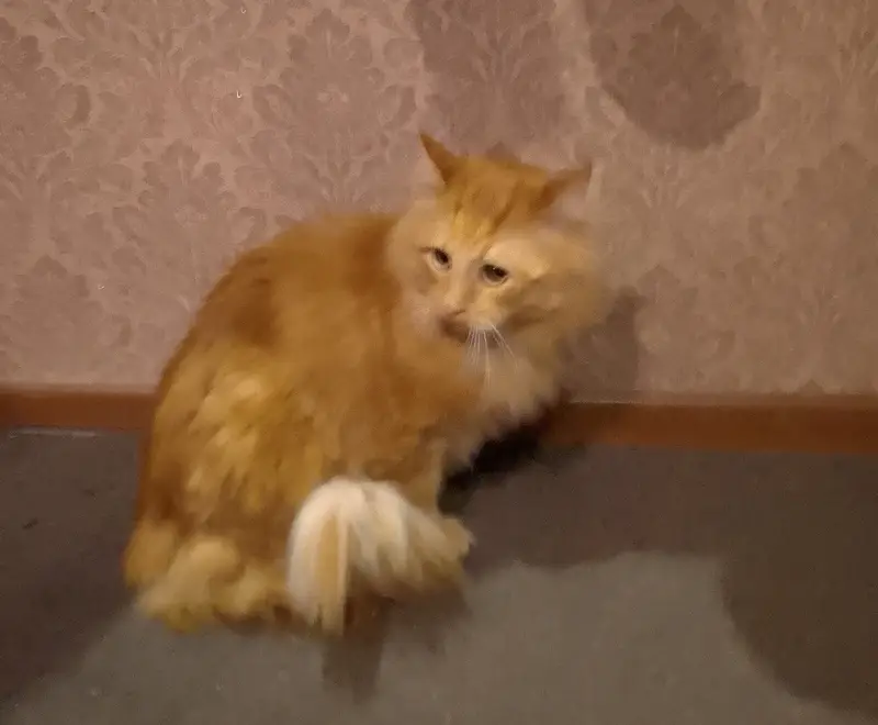 Рыжий (красный мрамор).Очень пугливый.Дома пугался новой одежды,предметов в руках.За всю свою жизнь так и не привык к стиралку,прятался.На улице никогда не был и попыток не делал.Выскочил из дома через терраску,когда на него бросилась заскочившая собака.Своей собаки не боялся и мог даже наподдать.На зов и корм не пошёл,хотя всё время был в этом районе( видели несколько раз).Через 3 недели поисков был застукан в соседнем дворе на гараже,но не пошёл и при попытке поймать сбежал.Больше его не видели