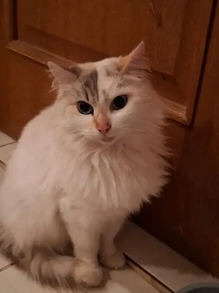 Пропал в районе стадиона Подолье (Подольский район, микрорайон Львовский) Выбежал из дома, бабушка заметила только через пару дней. Возможно выбежал когда испугался рабочих. Голубые глаза, окрас белый с серым, на мордочке на голове полосочки вертикальные Порода невская-маскарадная, немного пугливый, очень разговорчивый когда нужно