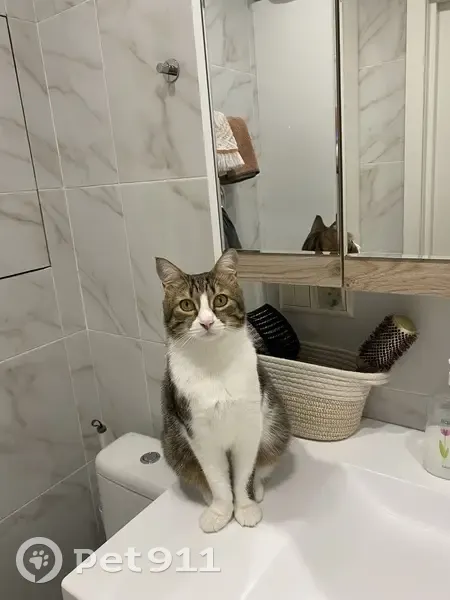 Окрас полосатый шпротно-белый. На задних лапах белые сердечки. Не крупный, аккуратный. Умный, не пугливый. Ушёл гулять из дома в посёлке и не вернулся