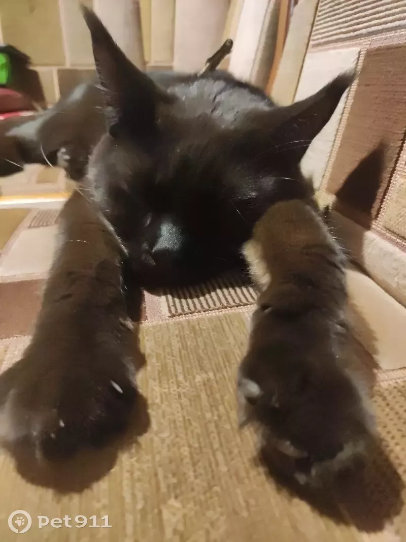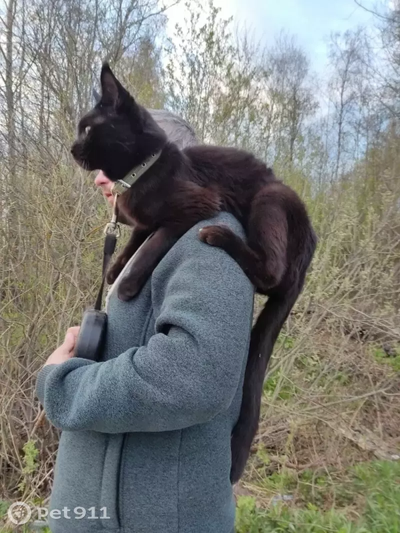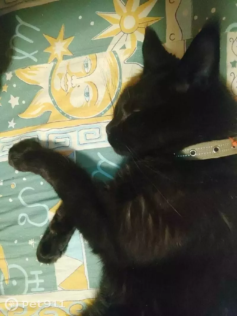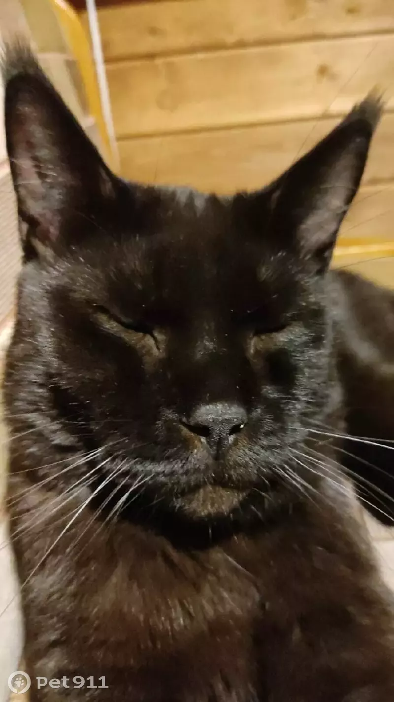 Порода мейнкун, черный, очень длинный хвост, зовут Флоки, на нём был зелёный брезентовый ошейник, в среду 19.10.2022 в районе деревни Непейно Дмитровский район СНТ литейщик примерно после 15.00 он покушал и пошел гулять и больше мы его не видели