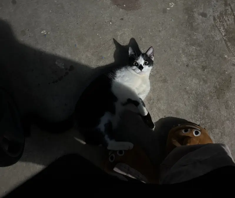 Кошка, окрас белая с черным. Вечером 4 августа сорвалась с рук, когда выходили из машины.