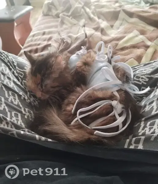 Помогите пожалуйста найти !! Пропала кошка по кличке Мася ей приблизительно 8 месяцев молодая красивая пушистая трёх цветная . Пропала в Московской области , Огруг Волоколамск, деревня Кашино . Контактный номер +79911340447 Приметы 2 ошейника один чёрный тканевый тругой зелёный от блох шрам на пузеке после операции кошка ласковая отвлекается на Масю .Кошка недавно начала гулять и обычна сидела около дома и гуляла не подалёку по рассказам с момента пропажи только 2 дня а пропала она 11. 04.2025 году. Прошла если кто то что то видел или может кто то её кормил или приютил позвонить или вернуть домой мы очень скучаем Гарантирую вознаграждение за любую информацию .
