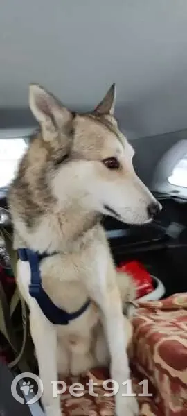 Молодой кобель, похож на лайку. Окрас светло-серый с рыжеватым. Морда, лапы и живот белые. Хвост кольцом. Был найден на прогулке в районе СТ Березки Солнечногорского района. На нем была шлейка, но поиски по всей округе не дали результата - хозяин не найден.