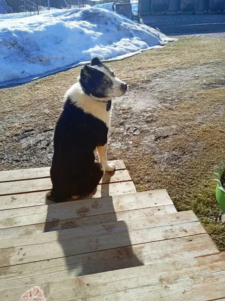 Крупный, черно-белый окрас. Убежал с участка после взрывов. Беззлобный, пугливый. По возможности сделать фото, может не подойти.