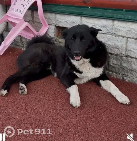 Основной цвет черный, белая грудь и передние лапы, потерялся в лесу. Собака в ошейнике с биркой (имя и телефон)