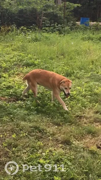 Фокс рыжий БЕСХВОСТЫЙ кобель. Отзывается лаем. Не подойдёт. Очень надеемся, что Фокс до сих пор вместе со своей подругой ЧЁРНОЙ собакой Шайной. Оба в голубых ошейниках. Оба имеют медальоны/адресники