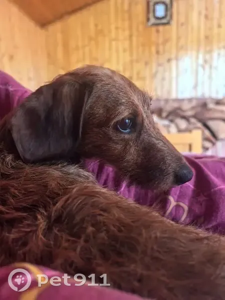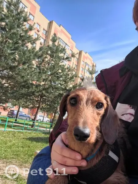 Убежала собака. Такса жесткошерстная,окрас рыжий. Со шлейкой чёрного цвета и рулеткой зелёного цвета. На ней синий ошейник с адресатником! Людей боится. Звонить по телефону +79169185351 Татьяна
