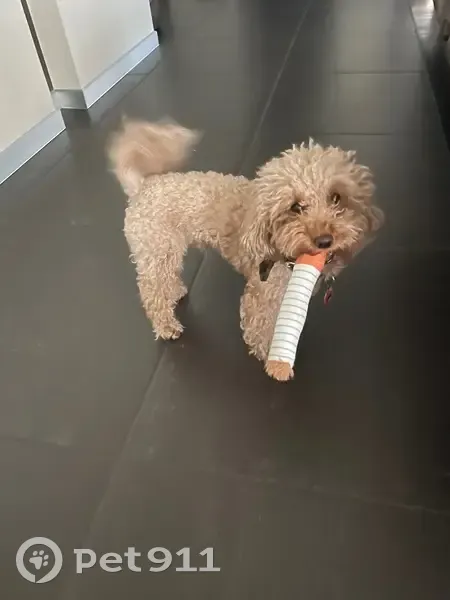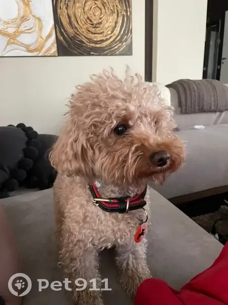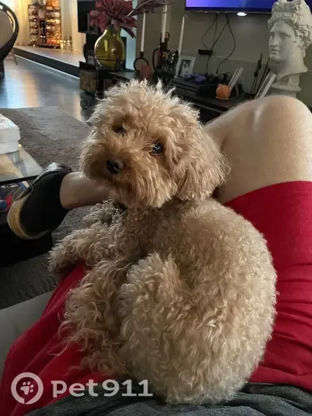 Мальтипу , кобель , не кастрированный , на контакт идет хорошо , особенно с девушками , Кремовый окрас , 25 см в холке , на шее красная бандана и ошейник со всеми моими данными , телефон для связи 89067729254 Дарья Вознаграждение гарантирую ! Откликается на кличку Рокко !