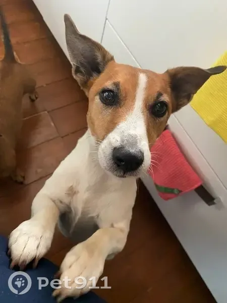Джек Рассел белая с рыжими пятнами и белой полоской на лбу. На животе клеймо и множественные пятна. Убежала в лес 30 сентября в 10.30 утра вместе с таксой, такса вернулась домой одна в 14.30. Жужжу найти не смогли Возраст 9лет, стерилизована