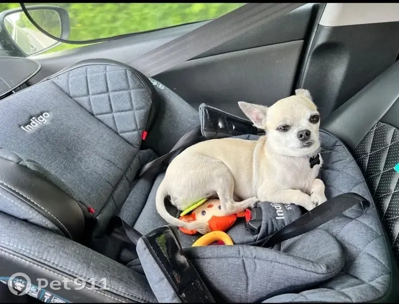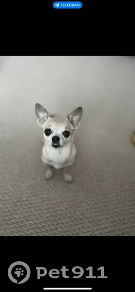 Чихуахуа. Цвет бежевый. Пугливая, домашняя. Не кусается! 8 лет. На обратной стороне жетона номер телефона