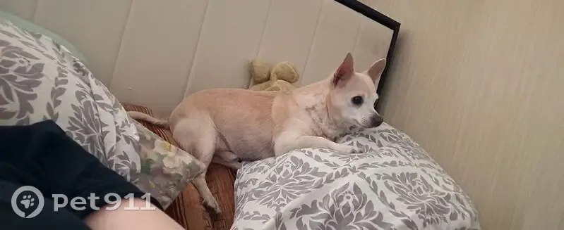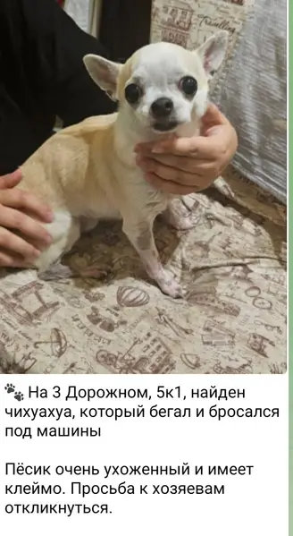 Чихуахуа, 13 лет. Окрас белый (желтоватый), небольшого роста, вытянутая морда не как у обычных чихуахуа (оленья), короткая шерсть, немного облезлый из-за старости. Добрый и нежный. Глуховат и слеповат. Пропал - выбежал за калитку и к дороге, не вернулся даже спустя два дня. (Обычно возвращался, всегда). Звоните, пожалуйста.
