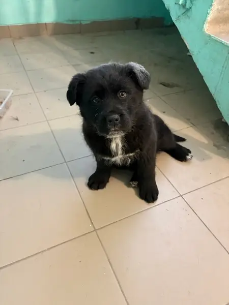 Метис лабрадор с овчаркой ,чёрный с белой грудкой возраст 3 месяца