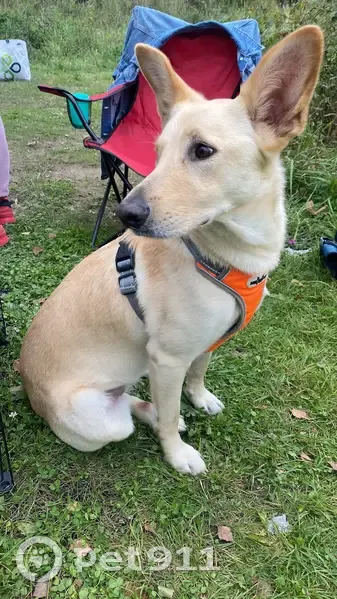 Пропала собака! Сучка около 3,5 лет рыженькая светлого окраса. Пугливая очень, боится салютов. Убежала со шлейкой и поводком.