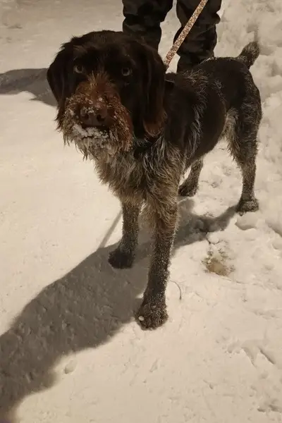 Потерялся дратхаар. Оранжевый ошейник.