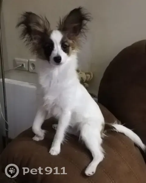 Пол - девочка, окрас белая с коричневыми ушами и пятнышками, порода папийон, убежала с участка. Щенок.