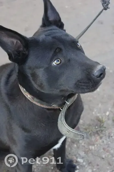 Метис. Черная гладкая шерсть, на груди белое пятно. Глаза карие. У Марка бывают приступы, после очередного выпустили его погулять у дома. Через несколько минут он убежал, больше его не видели