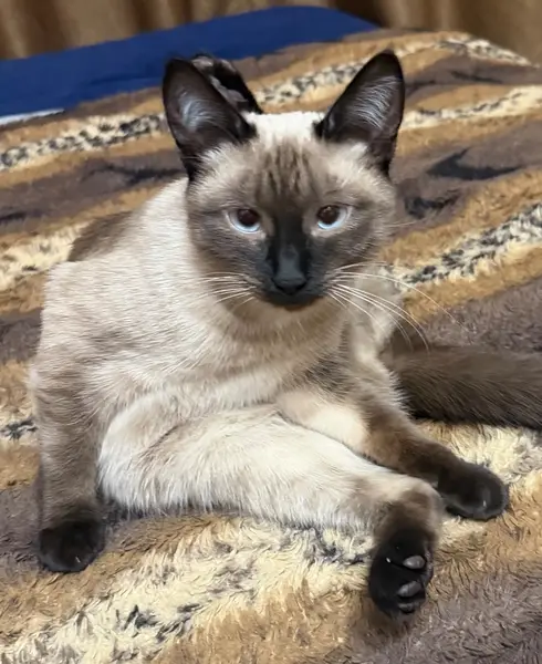 Кот найден в городе Московский (киевское шоссе), мкр. "Град Московский" ул. Радужная. Кот тайской (сиамской) породы, соответствующего окраса, крупного размера, упитанный, взрослый, домашний, приучен к лотку, блох не обнаружено.