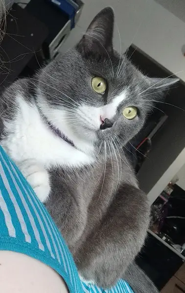 Серый окрас, белые лапки