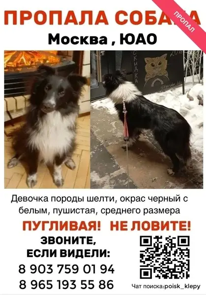 Черный с рыжими подпалинами. Порода похожа на шпица. Без ошейника и адресника. Собака ухоженная, шерсть чистая, мытая, пахнет шампунем.
