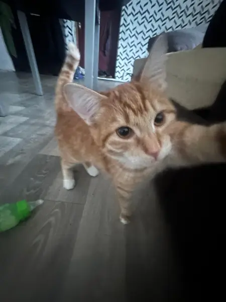 15 апреля 2016 г. на ул. Удальцова (район метро Проспект Вернадского) найдена некрупная короткошерстная ярко-рыжая в полоску кошка, глаза желтые, очень длинный хвост, зубки чистые белые, небо розовое. Кошка ручная, ласковая, знает лоток и когтеточку, ест кошачий сухой и мокрый корм, прекрасно ориентируется в квартире, не боится шума бытовой техники и других домашних животных.
