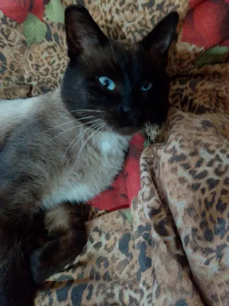 Нашли кота, очень красивый с голубыми глазами. Все как у породы сноу-шу. Взяли на передержку. Ищем хозяина. Очень красивый и ласковый кот. Оставить не можем, аллергия.