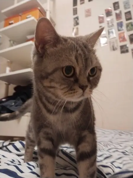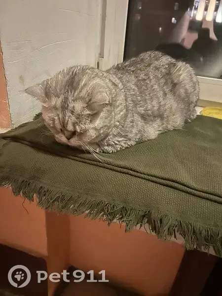 Похож на британца. Серый, крупный, внешне больше похож на немолодого кота. Ручной и ухоженный. Кот найден в подъезде жилого дома, обход соседей результатов не принес. Возможно подкинули.