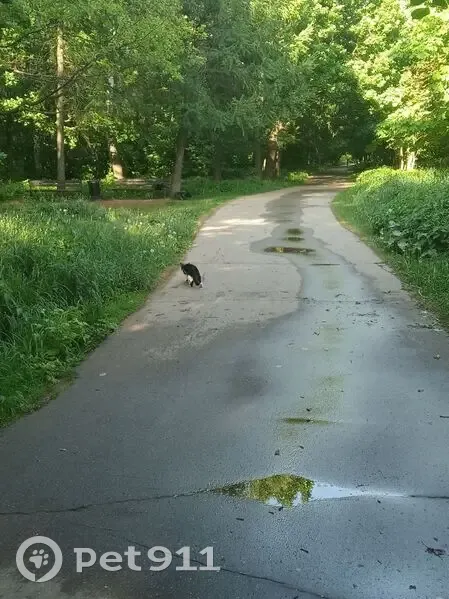Бегала около входа в лесопарке (вход около остановки Улица Чечулина, дом 14, центр борьбы с туберкулезом). Кажется, кошка, но, может, и кот. Очень пугливая. Черно-белая, глаза желто-зеленые