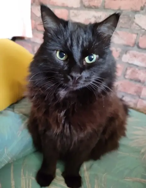 Крупный пушистый черный кот, ласковый, кастрирован.