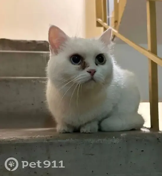 ️ Замечен(а) кошка (или кот) Москва, Обручевский район (метро Коньково, РУДН), улица Саморы Машела 08.06.25 со второй половины дня белая шерсть, глаза разного цвета, амуниции нет. Боится. Сидит на лестнице, к человеку подходит с осторожностью, но предложенную воду и еду не трогает ️ 89181577242 Дарья
