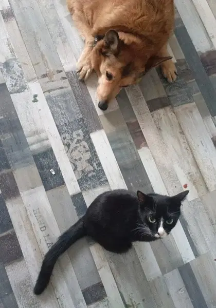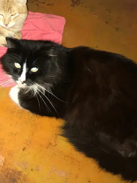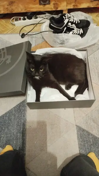 Чёрный (ая), лапки белые, галстучек белый, не крупный, ласковый