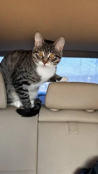 Кошечка. Ориентировочно 2 годика. По её виду - это европейская короткошерстная кошка. Европейские короткошерстные кошки известны своим спокойным и общительным характером, а также неприхотливостью в уходе. Хозяин отзовись