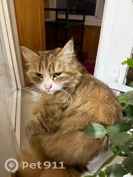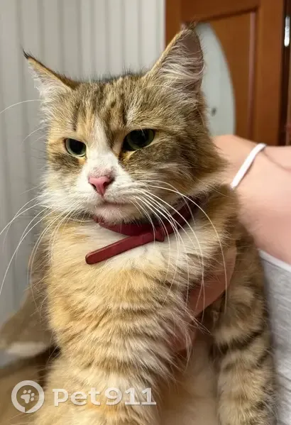 русая зеленоглазка с красным ошейником(от блох)! Встретили её испуганную у Пожарной части.. Очень ждёт своих хозяев
