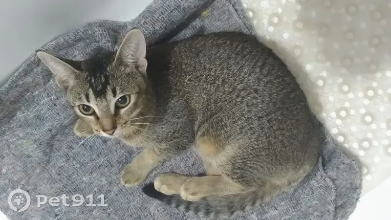 Маленькая кошечка (котёнок?), похожа на абиссинку (метис?), задняя лапка поджата (возможно, перелом после падения из окна), ласковая. Очень сильно плакала ночью и с утра на улице. Придержана.